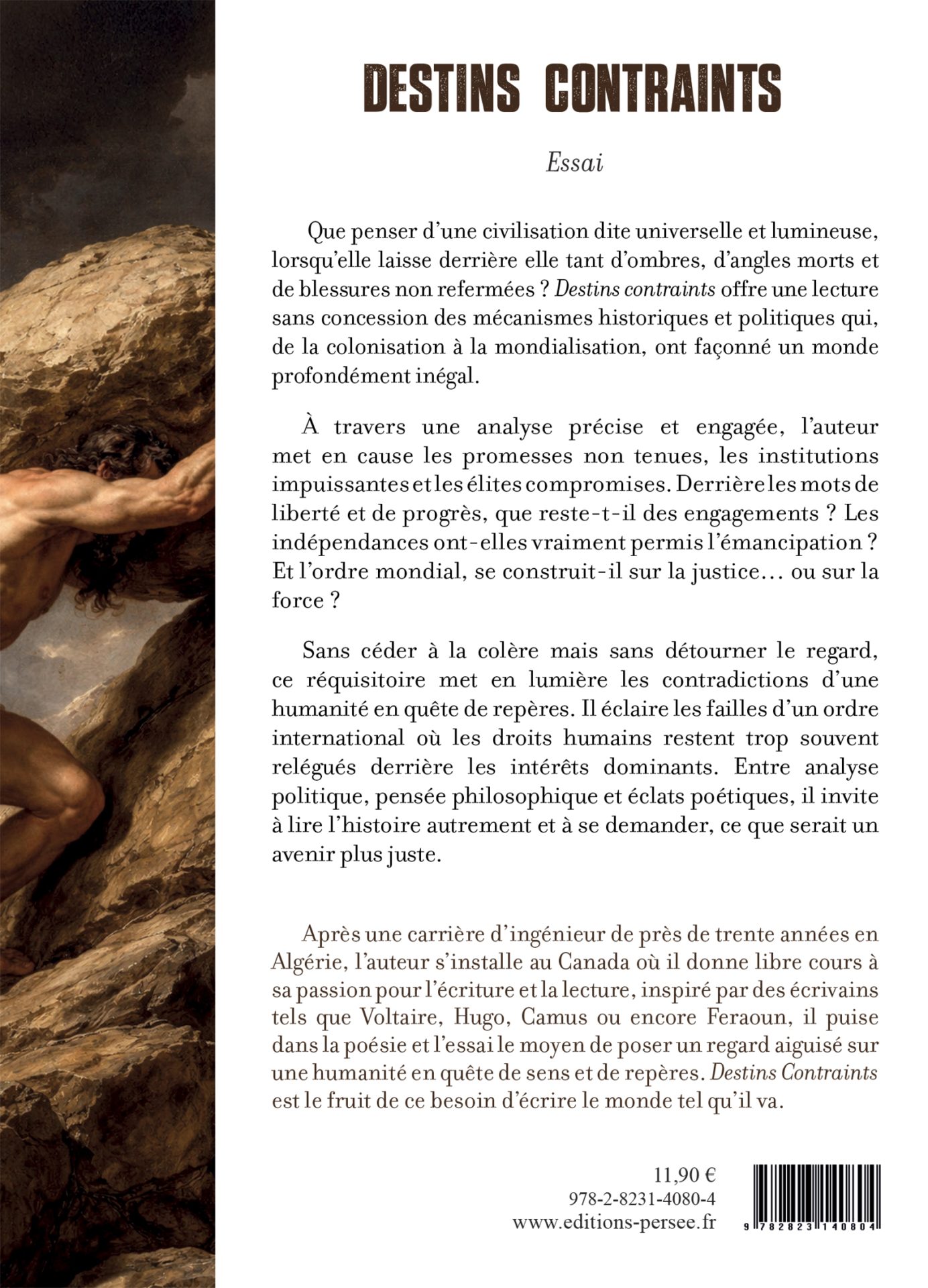 Que penser d’une civilisation dite lumineuse et universelle, lorsqu’elle laisse derrière elle tant d’ombres, d’angles morts et de blessures non refermées ? Destins contrariés offre une lecture sans concession des mécanismes historiques et politiques qui, de la colonisation à la mondialisation, ont façonné un monde profondément inégal.