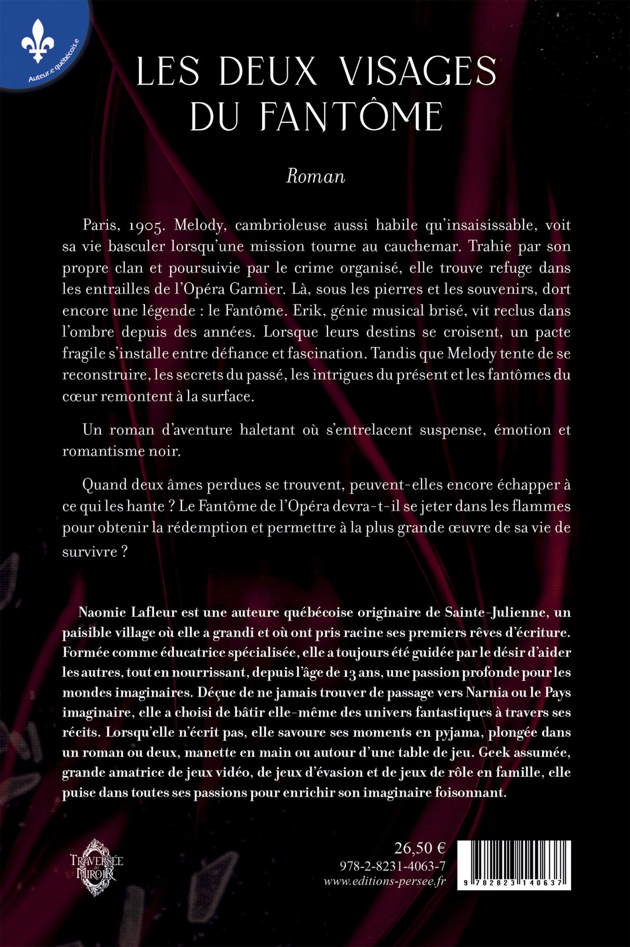 Paris, 1905. Melody, cambrioleuse aussi habile qu’insaisissable, voit sa vie basculer lorsqu’une mission tourne au cauchemar. Trahie par son propre clan et poursuivie par le crime organisé, elle trouve refuge dans les entrailles de l’Opéra Garnier. Là, sous les pierres et les souvenirs, dort encore une légende : le Fantôme. Erik, génie musical brisé, vit reclus dans l’ombre depuis des années. Lorsque leurs destins se croisent, un pacte fragile s’installe entre défiance et fascination. Tandis que Melody tente de se reconstruire, les secrets du passé, les intrigues du présent et les fantômes du cœur remontent à la surface.