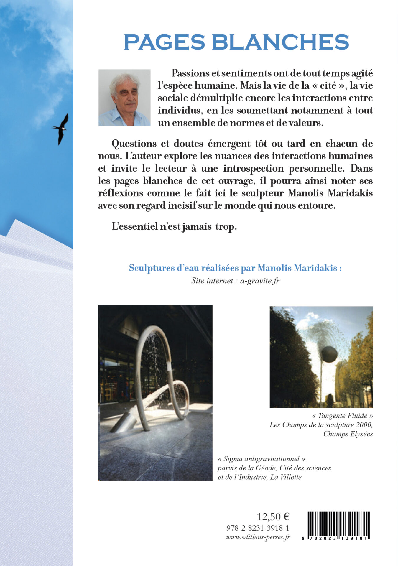 Questions et doutes émergent tôt ou tard en chacun de nous. L’auteur explore les nuances des interactions humaines et invite le lecteur à une introspection personnelle. Dans les pages blanches de cet ouvrage, il pourra ainsi noter ses réflexions comme le fait ici le sculpteur Manolis Maridakis avec son regard incisif sur le monde qui nous entoure.